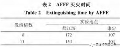 在空白实验中都江堰燃烧488s,康定燃烧了641s均大于两地预燃时间加上灭火时间,说明灭火过程中有足够的油量让燃烧进行,灭火真实有效而并非航空煤油耗尽熄灭。