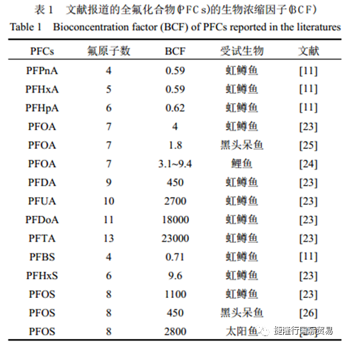 全氟化合物的生物富集效应研究进展