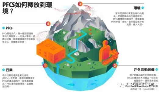 人类可通过食用受污染的食物和水接触PFCs,室内空气和灰尘也是PFCs的潜在来源,从而造成广泛的非职业人群暴露。PFCs在全世界范围内的人体血液样品中均有检出,其在人体血液中的半衰期很长,如PFOS可以长达5.4年,而全氟己烷磺酸(perfluorohexanesulfonate,PFHxS)长达8.5年。
