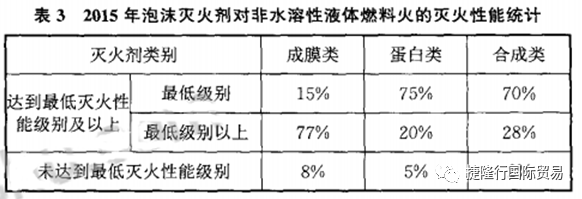 三、2015年我国泡沫灭火剂产品灭火性能及其发展评估