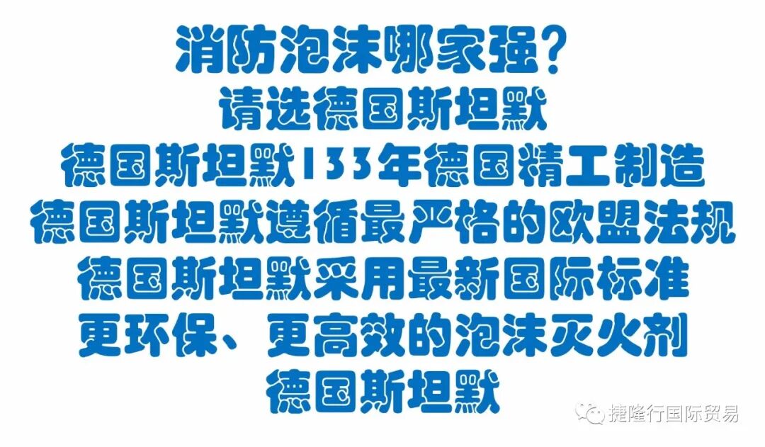 在21世纪,消防所面临的挑战日益严峻并且仍在不断发生变化。这不仅涉及灭火材料本身的性能,而且对灭火解决方案的环保性、社会认同性方面提出了更高的要求。预防性和防御性的消防任务特别复杂,并且解决方案需要考虑到各种细节。特别是在工业方面,只能通过丰富多样、成熟的产品,来实现灭火效率更高,成本更低廉的解决方案。从早期 Richard.Sthamer 博士创立公司,直至现在公司第5代管理人,我们的目标始终如一:提供高标准、高质量的产品,并且始终尽最大努力满足各类客户的不同需求。自公司于1886年成立于汉堡起,我们始终致力于研制优质的泡沫灭火剂。如今,Dr. Sthamer 公司已经是主流的泡沫灭火剂制造商之一。作为一家中型、家族式企业,Dr. Sthamer具备充分的灵活性是商业成功并且使世界各地客户均满意的保证。